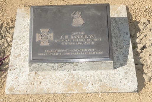 Captain Randle was commander of ‘B’ Company, 2nd Battalion, Royal Norfolk Regiment. On 4 May 1944 during the Battle of Kohima in northeast India, he was ordered to attack the Japanese flank on General Purpose Transport (GPT) Ridge during the relief and clearance of Kohima. The citation from the London Gazette reads: